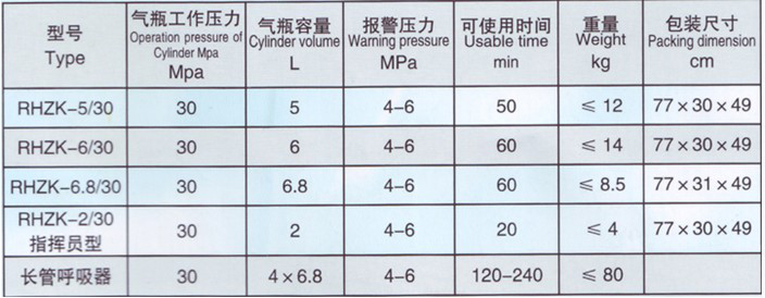 长管呼吸器由移动式供气源和呼吸组合而成,备有30m固定管1根、10m长管两根,最大使用距离达50m,配有2套呼吸面罩,可供2人同时使用。